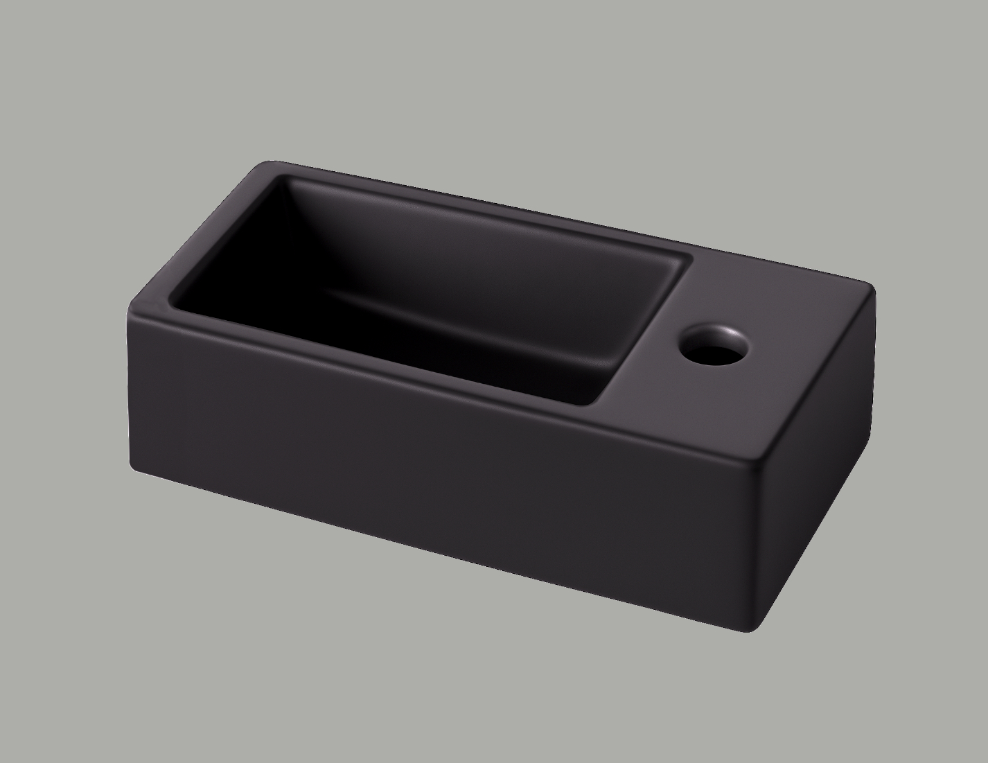 lave mains "gain de place" longine noir mat robinet a droite
